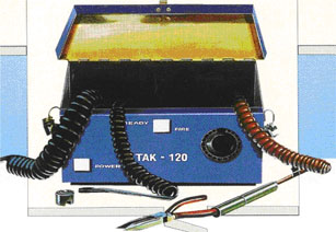 The Heat Treater TAK-120 Portable Attachment unit enables rapid connection of thermocouple wire to the surface of a work piece.